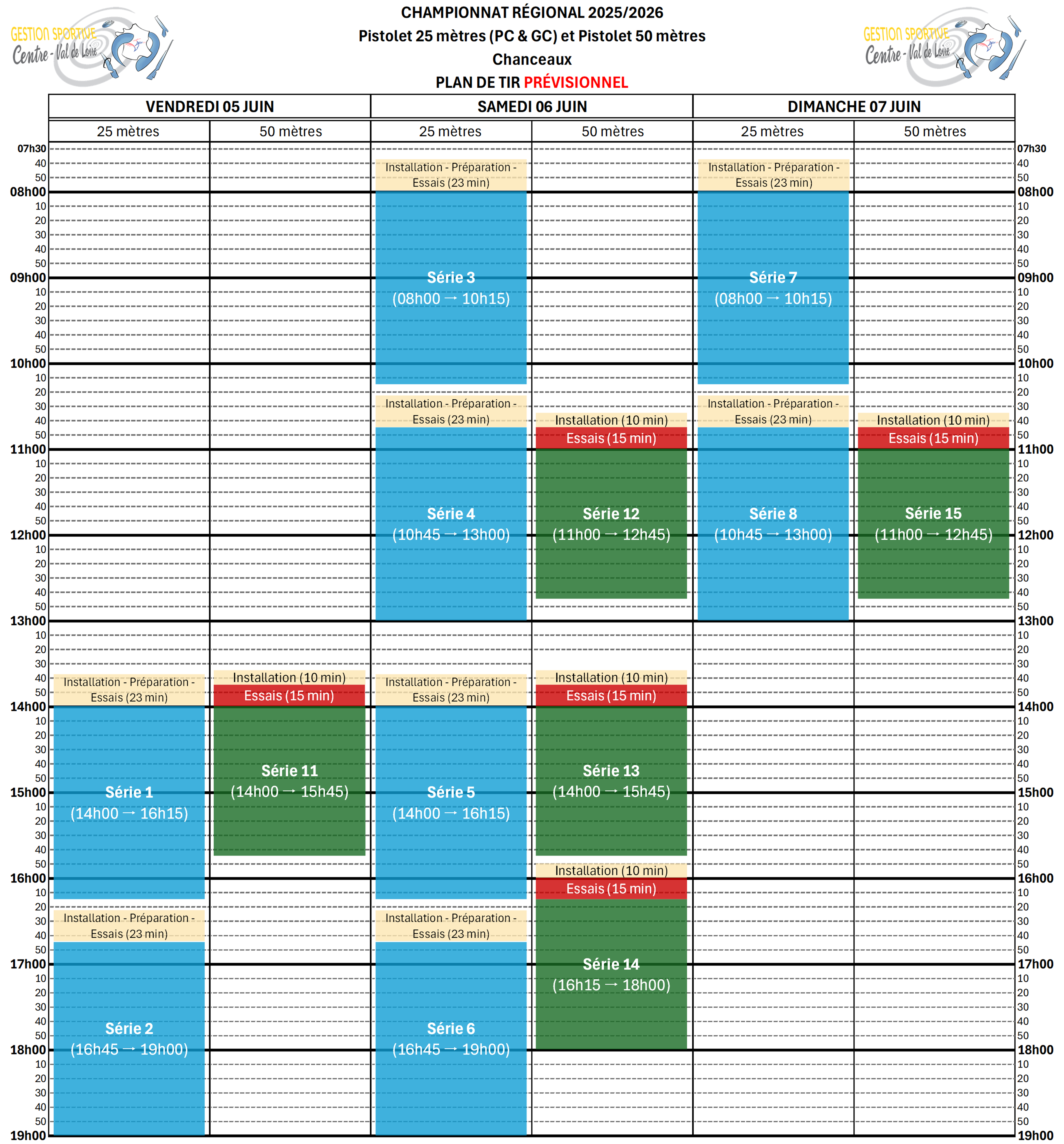 Si un club ne compte que 3 tireurs, l’équipe est automatiquement inscrite (inscriptions gratuites). Cependant, si un club compte plus de 3 tireurs dans cette épreuve, il doit transmettre les engagements avant le premier tir individuel via le fichier suivant : Fiche engagement équipe P25m (Excel)
